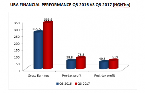 Alabingo Finance Report || The United Bank for Africa (UBA) took advantage income from foreign exchange trading and term loans to corporate organizations to post a double digit profit-after-tax (PAT) in third quarter of 2017, despite operating expenses rises during this period.