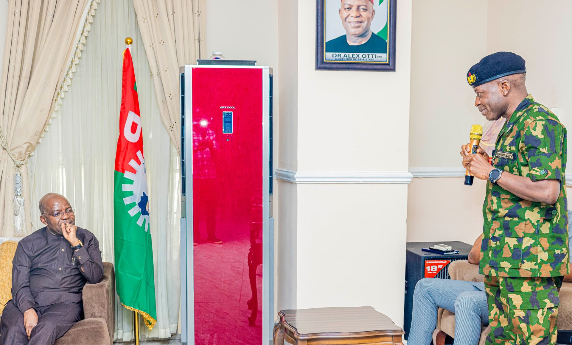 Governor Otti spoke Thursday when he received the Flag Officer Commanding, Naval Training Command, Lagos, Rear Admiral Ignatius Albara, who was in the state on a familiarisation tour of the Nigeria Navy College of Accounting and Finance, Owerrinta.
