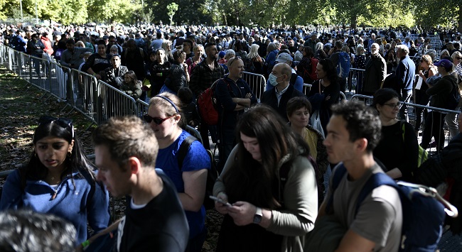 Members of the public are braving waits that have stretched to more than 25 hours, and chilly night-time temperatures, to view her flag-shrouded coffin.