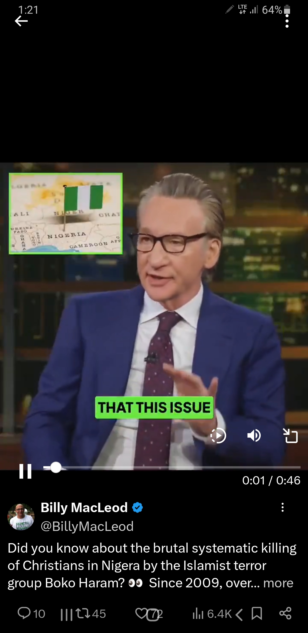 Maher said the tragedy had not garnered the attention he believed it deserves, arguing that if “you don’t know what’s going on in Nigeria, your media sources suck.”