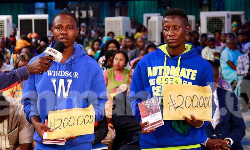 T.B. Joshua, who had just turned from the Dominican Republic, gave the two men each N200,000. Mr. Imasuen could not hold back tears as he received the gift.