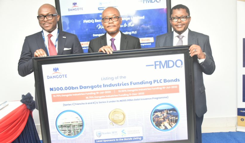 Dangote Industries Limited (DIL) has formally listed its N300 billion Series 1 and 2 bonds issued under the Dangote Industries Funding Plc during a grand listing ceremony at both the…