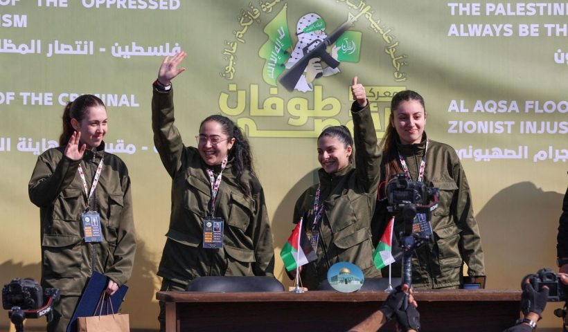 The Palestinian militant movement Hamas handed four female Israeli soldier hostages over to the International Committee of the Red Cross in Gaza on Saturday, releasing them in return for some…