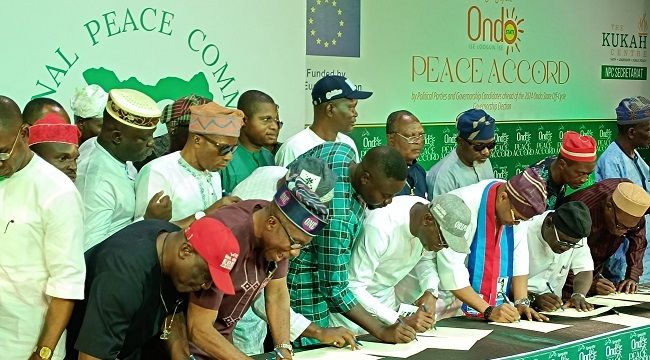 Read More 18 parties sign peace accord ahead of Ondo governorship pollTag: #Peace Accord