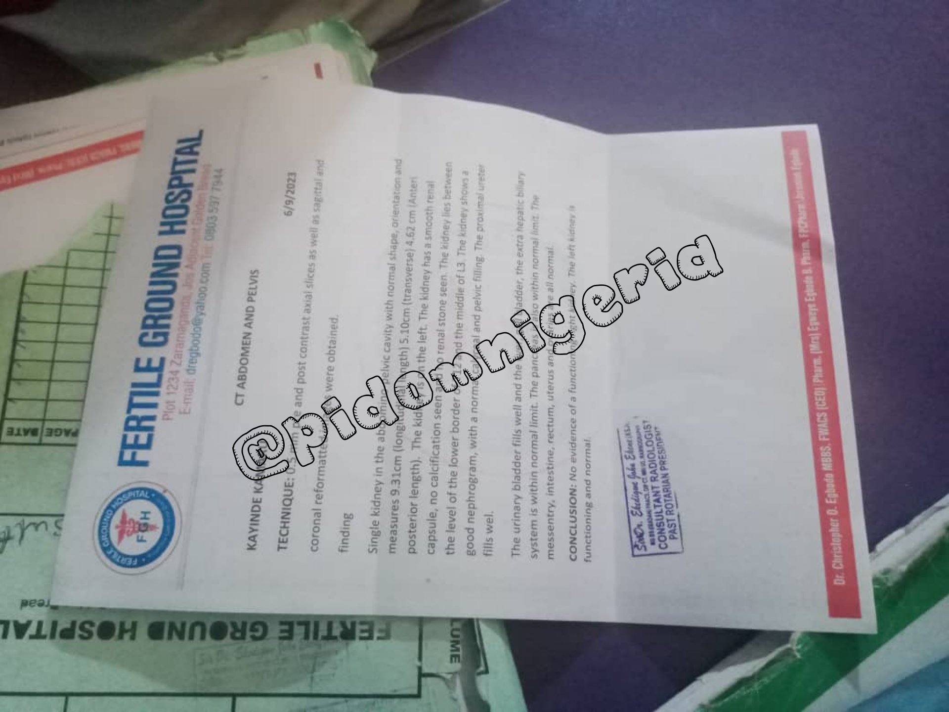 But to clear all doubts, another CT scan was recommended & done on Mrs Busari on the 5th of September 2023. When the result came out, it was indeed confirmed that her right kidney was harvested.