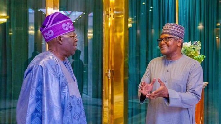 President Bola Tinubu received billionaire businessman Aliko Dangote at the State House in Abuja on Tuesday evening for a private meeting.