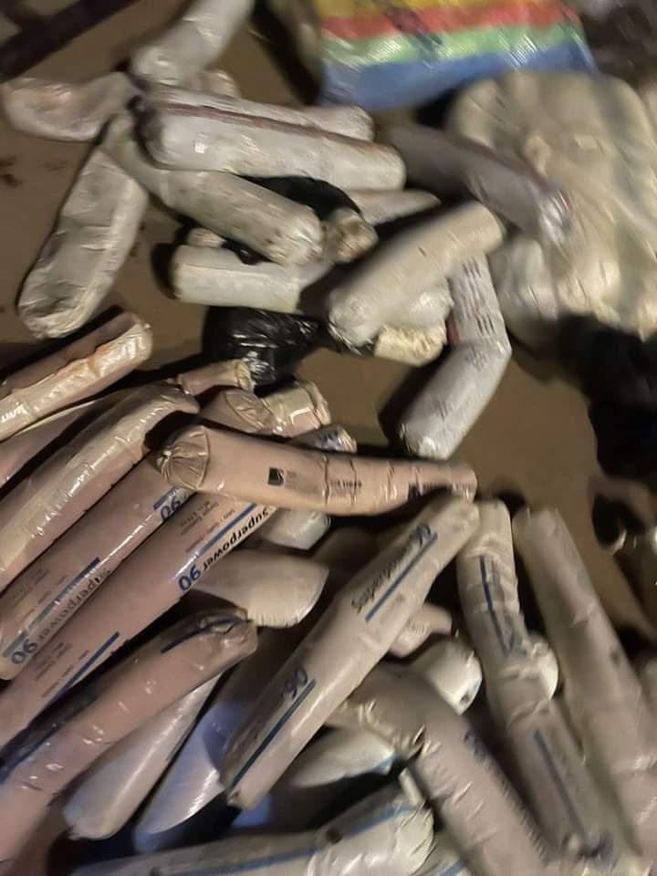 The troops recovered 102 rounds of 7.62mm special, 2 Pump Action guns, 5 locally made rifles, 1 roll of Detonator 27, quantity 24 Detonators, 33 electrical cables, quantity 12 of type 36 Hand Grenades, and 12 bags of substances suspected to be Marijuana.
