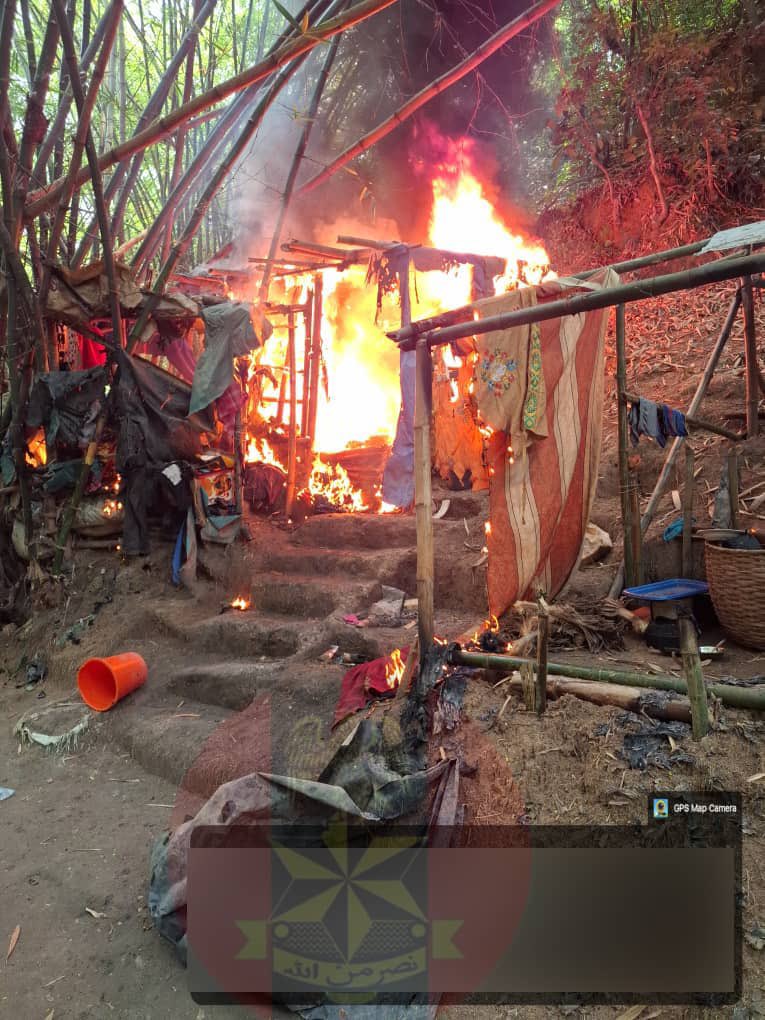 A significant cache of weapons and logistics was recovered, including two pump-action guns, one locally fabricated gun, one tear gas gun, seven gas cylinders, an electric kettle, and flags linked to extremist propaganda. Troops also destroyed all life-support structures at the terrorists’ Supreme Headquarters in the valley, including solar panels and a Mikano generator, dealing a critical blow to their operational sustainability.