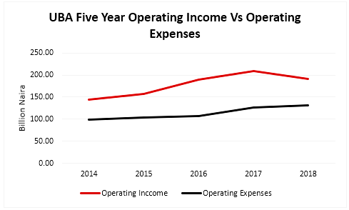 And due to lower foreign exchange trading income, Operating Expenses grew by 4.1 per cent to N197.3 billion, compared to N189.7 billion in 2017.