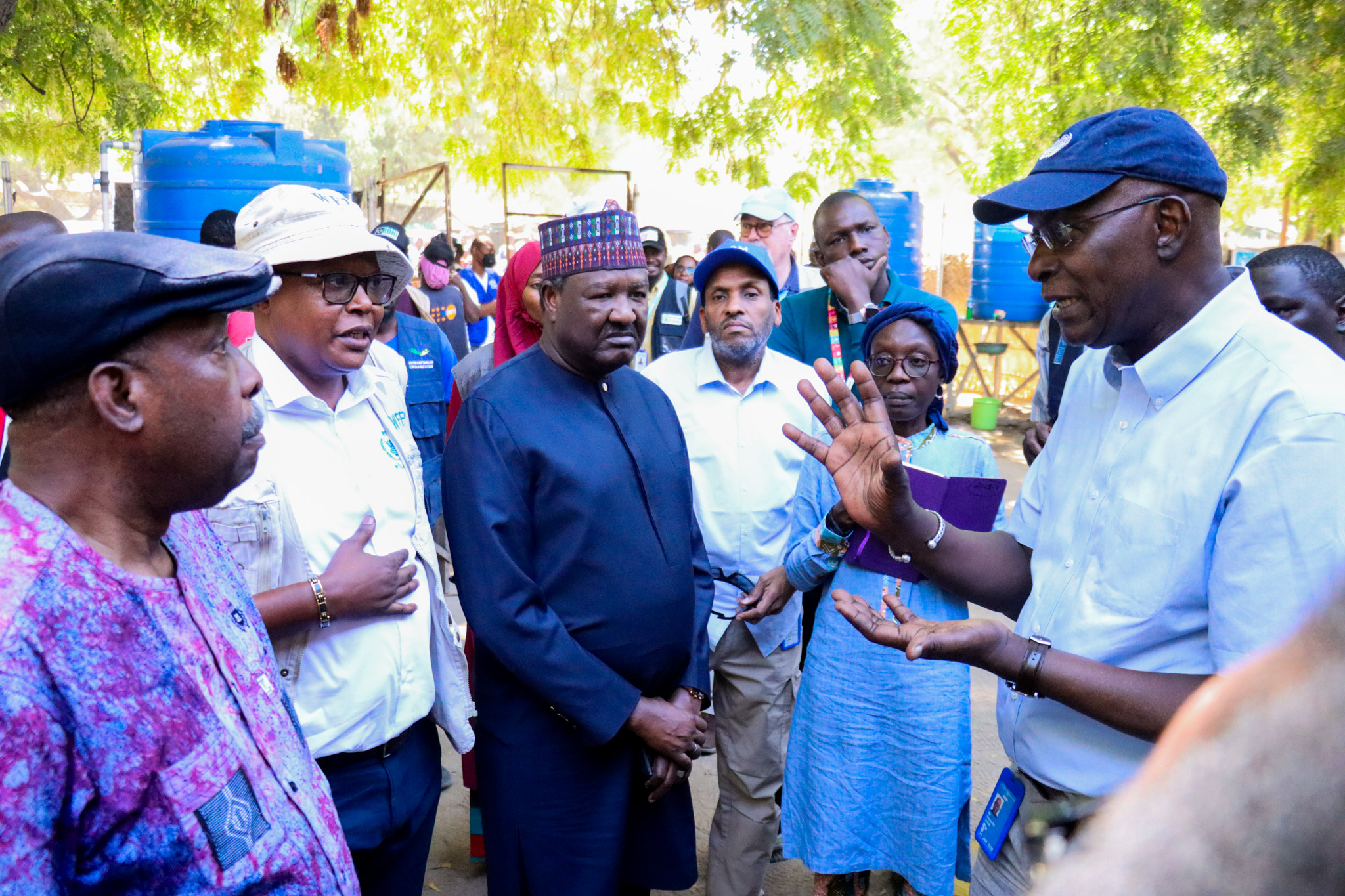 The officials visited a centre equipping young girls and boys with livelihood skills run by the International Organization for Migration (IOM) and a UNICEF-run social cohesion project at the Government Senior Secondary School (GSSS) camp. In addition, they visited a nutrition centre supported by the World Food Programme (WFP) where malnourished children are receiving treatment. The officials also spoke with women and adolescent girls at a UNHCR/GISCOR Safe Space and met with representatives of humanitarian agencies in Bama. They also paid a courtesy call on the Shehu of Bama Dr. Umar Kyari Umar El-kanemi.