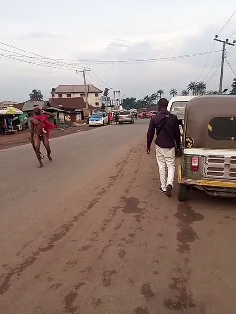 The scantly covered gunmen, numbering over 50, were seen hanging live cock around their neck while many of them are armed with AK47 riffles.