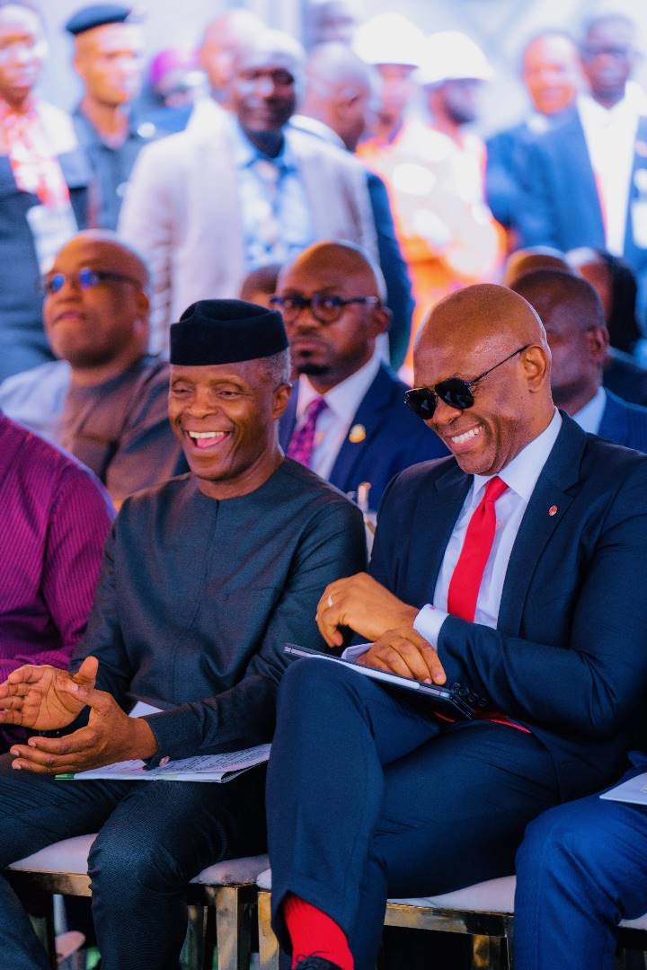 Vice President, Yemi Osinbajo and Group Chairman, Transcorp Plc, Mr. Tony Elumelu; during the commissioning of Transcorp Afam 3 Fast Power 240MW turbines in Afam, Rivers State on Tuesday.